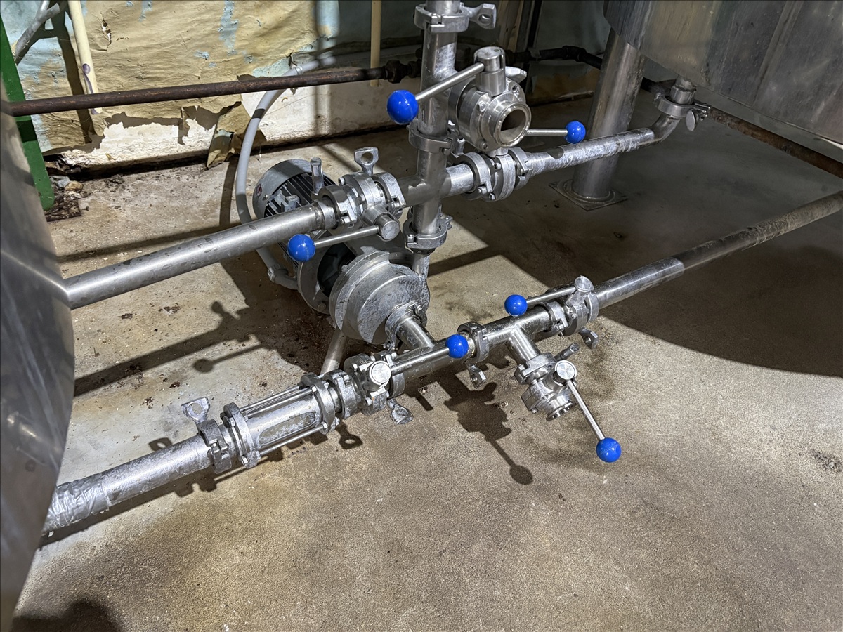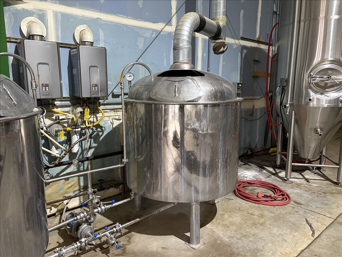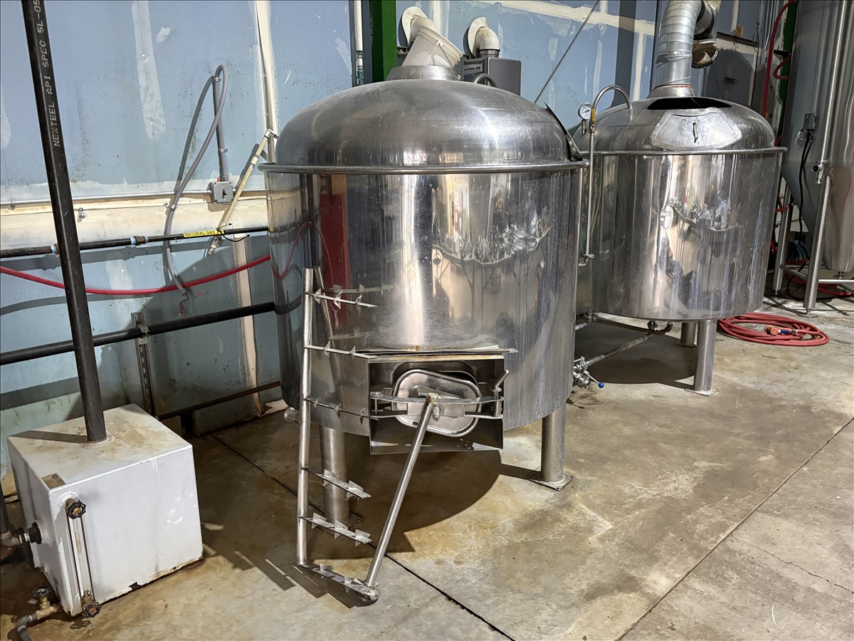 7-BARREL, 2-VESSEL S.S. BREWHOUSE W/RAKE-SYSTEM JACKETED MASH TUN, FALSE BOTTOM IN MASH TUN, INLINE VARIABLE SPEED PUMP, WALL-MOUNTED PUMP CONTROLS: 230V, 3-PH