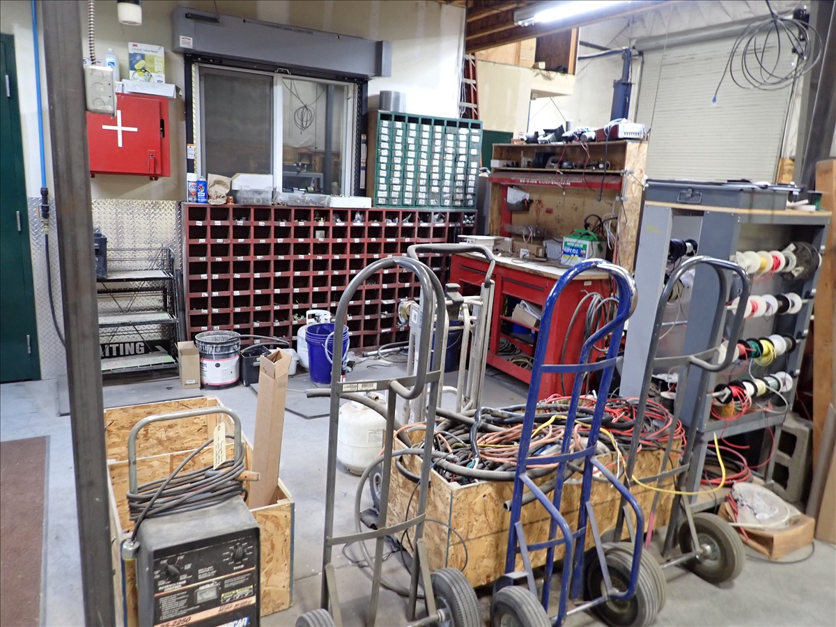 FITTINGS, NUT/BOLT BINS, BENCH, WIRE, WIRE CART, (...