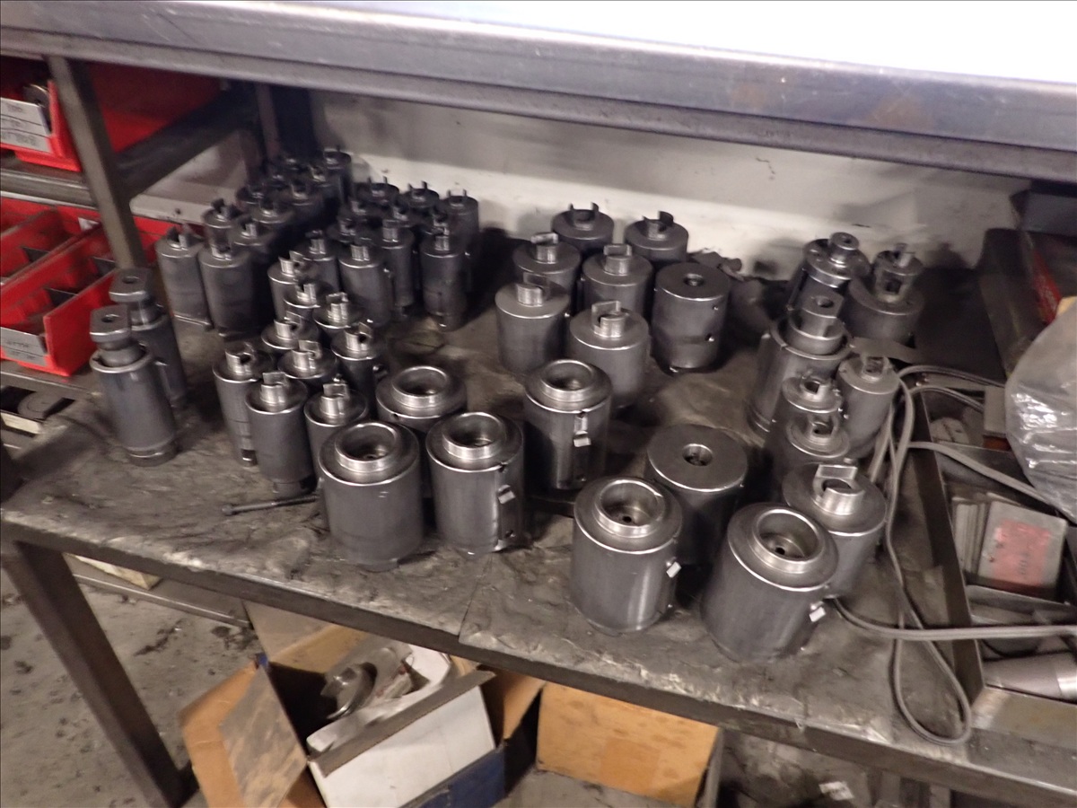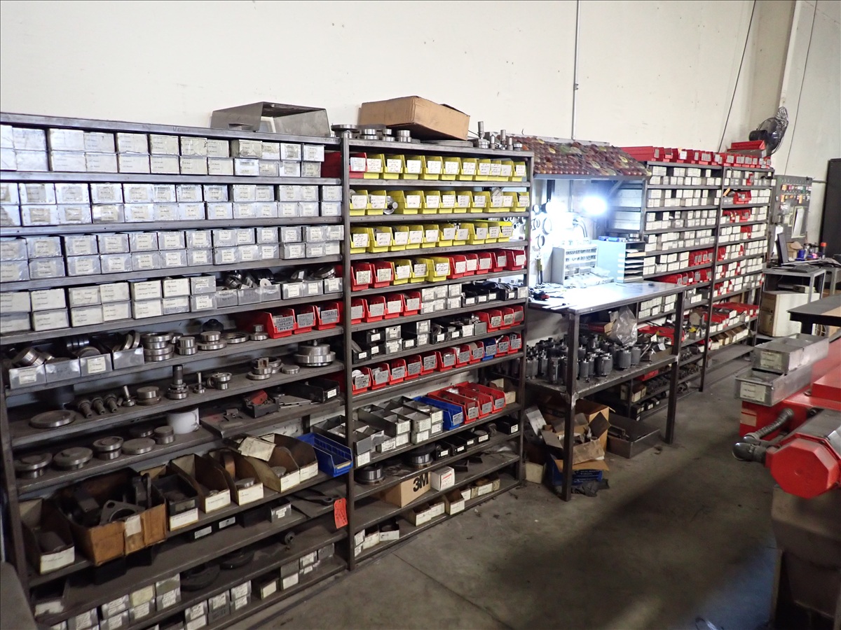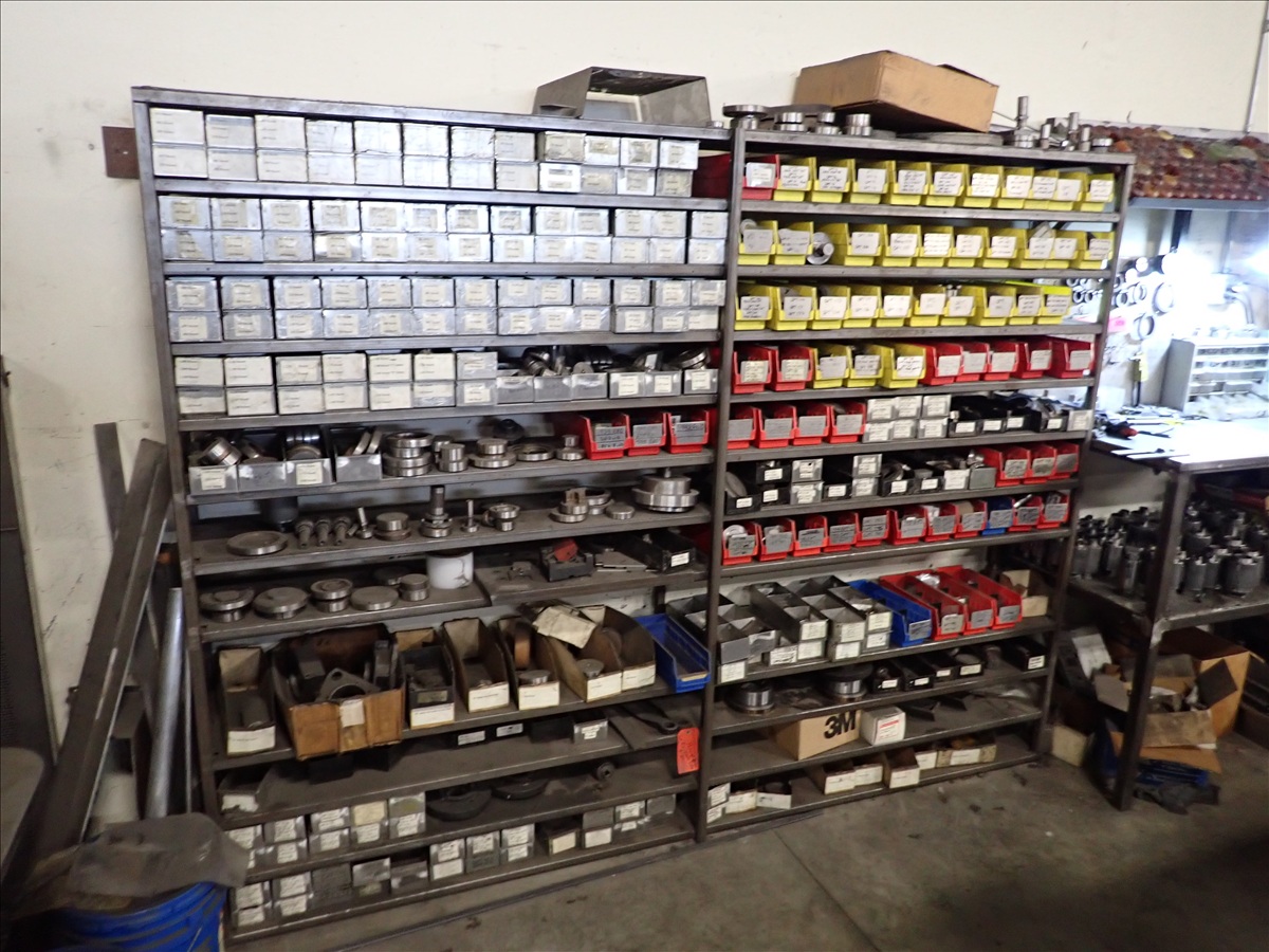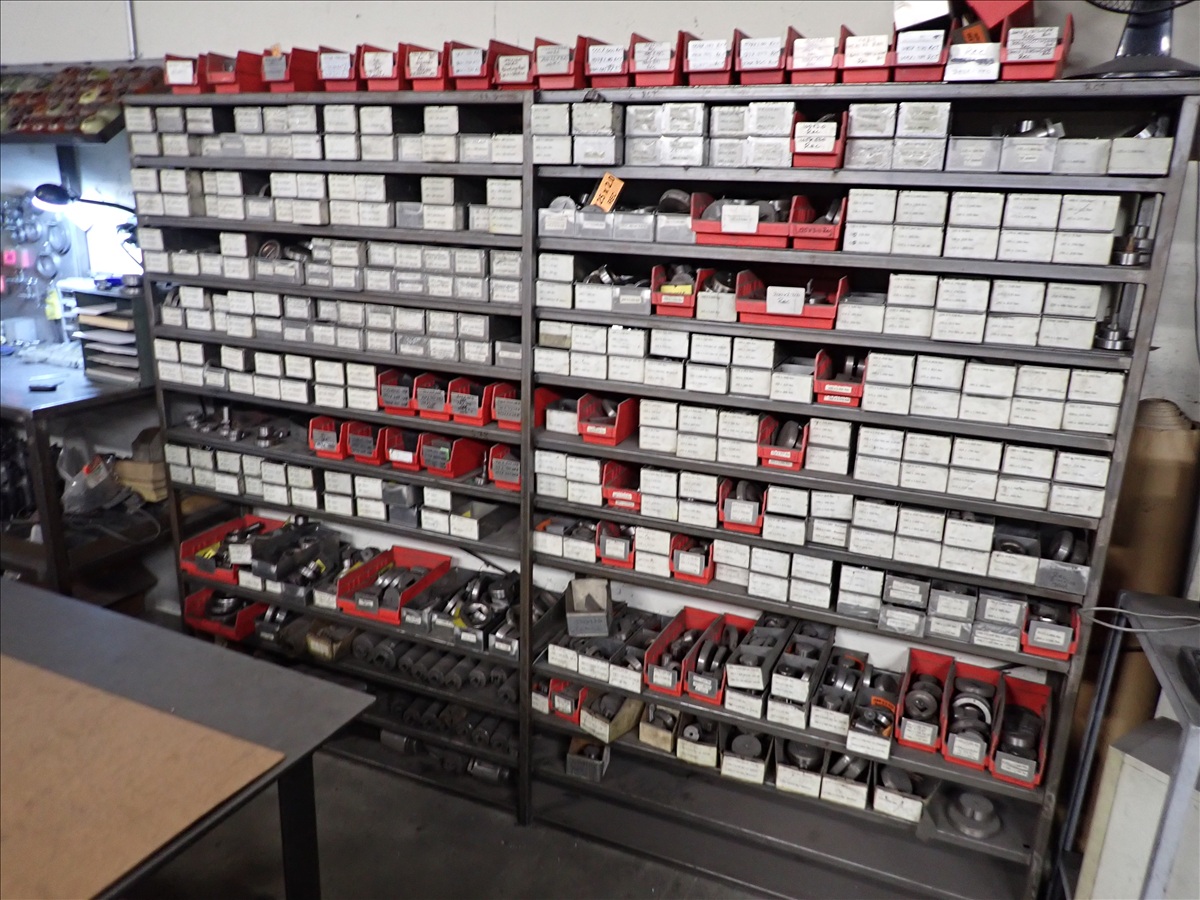 (5) SHELVING UNITS W/ASSORTED WIEDEMANN TURRET PUNCH PRESS TOOLING