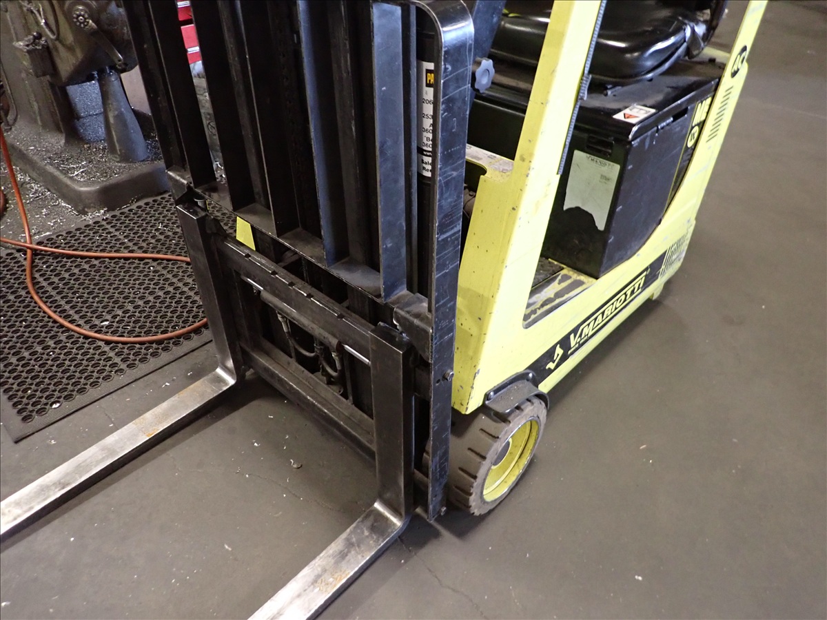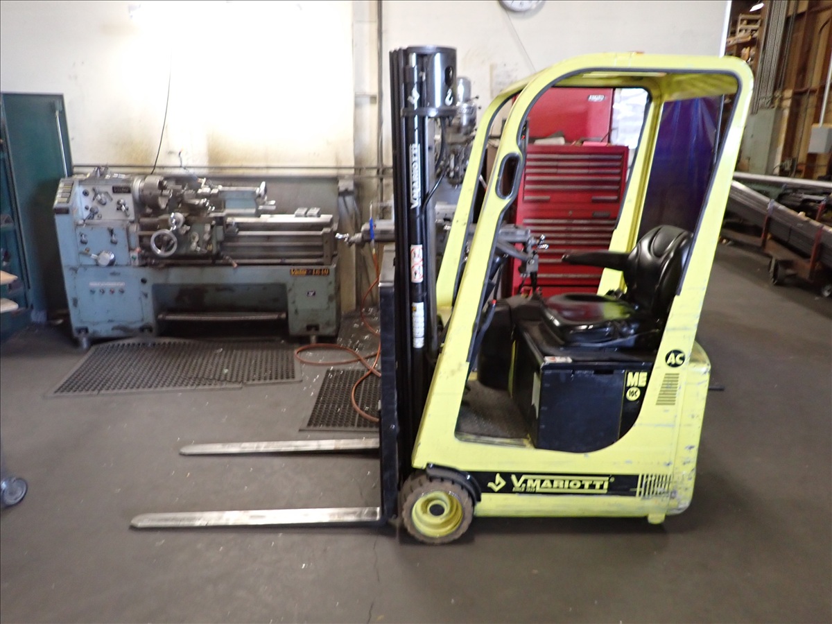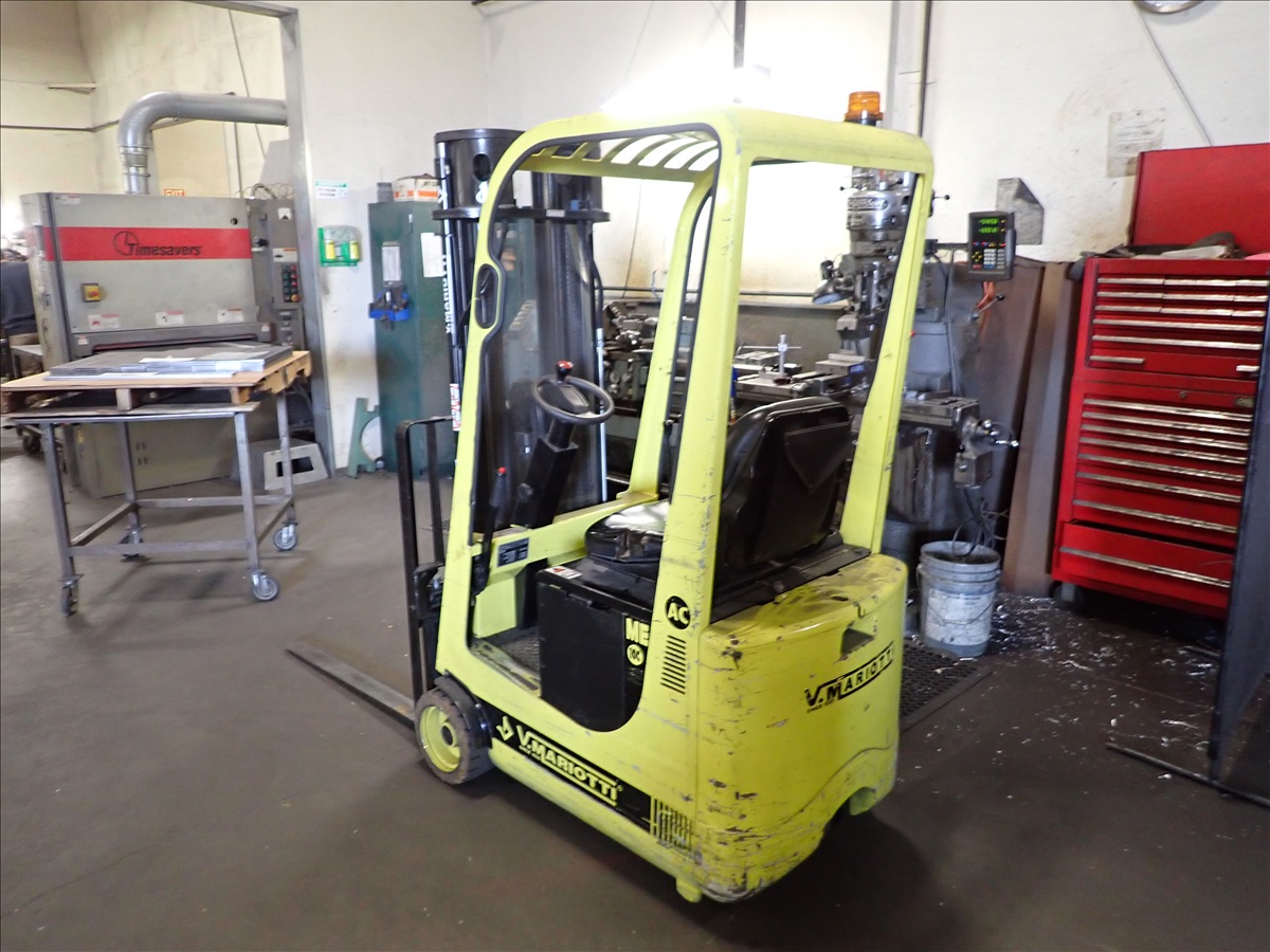 1,950 LB CAP. 3-WHEEL ELECTRIC FORKLIFT, 3-STAGE MAST, SIDE SHIFT, CHARGER