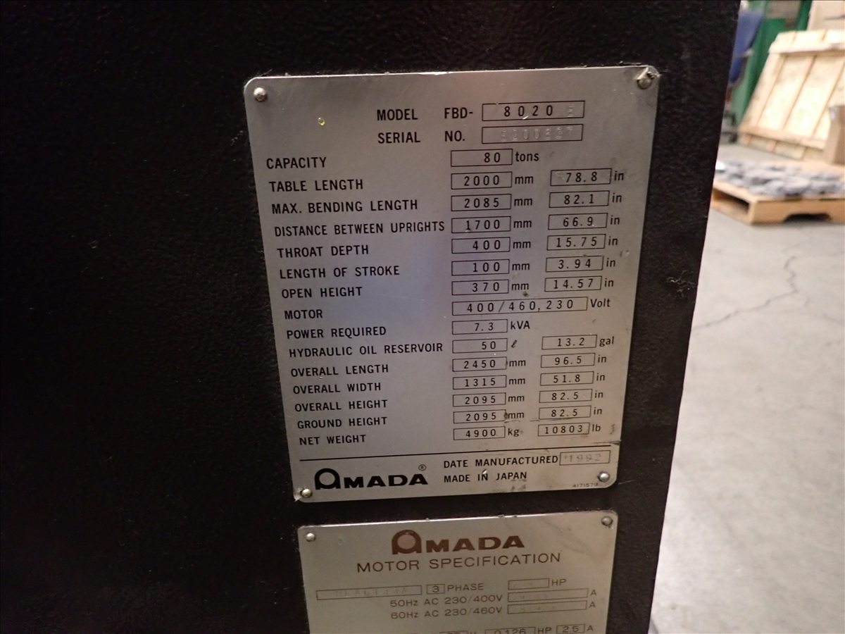78" X 80 TON CNC HYDRAULIC PRESS BRAKE, BACK GAUGE, NC9-EXII CONTROLS