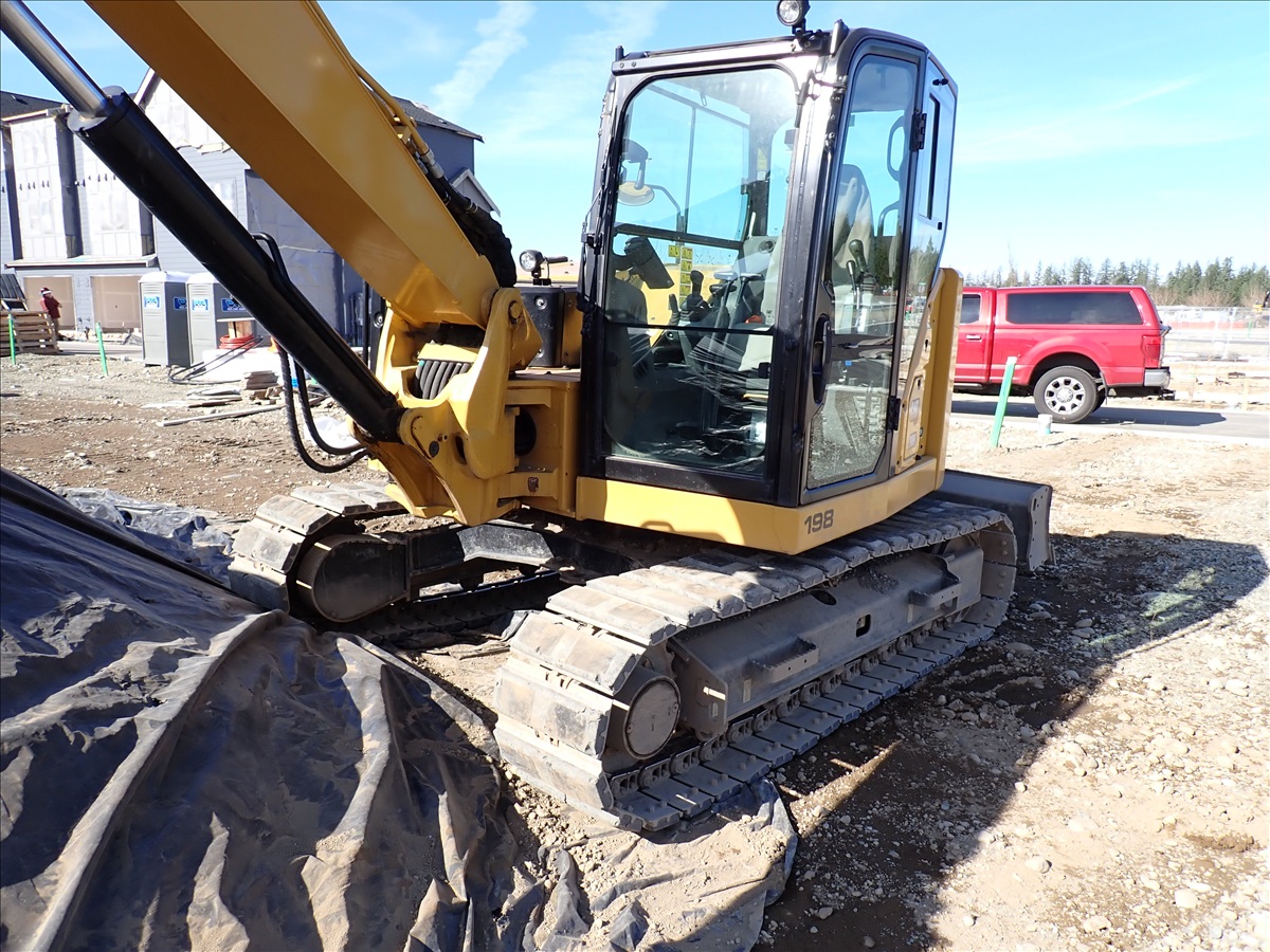 HYDRAULIC EXCAVATOR, PIN GRABBER, DITCH & DIG BUCKET, HYD THUMB, AUX HYD, SWING BOOM, A/C CAB, BLADE, RUBBER PADS