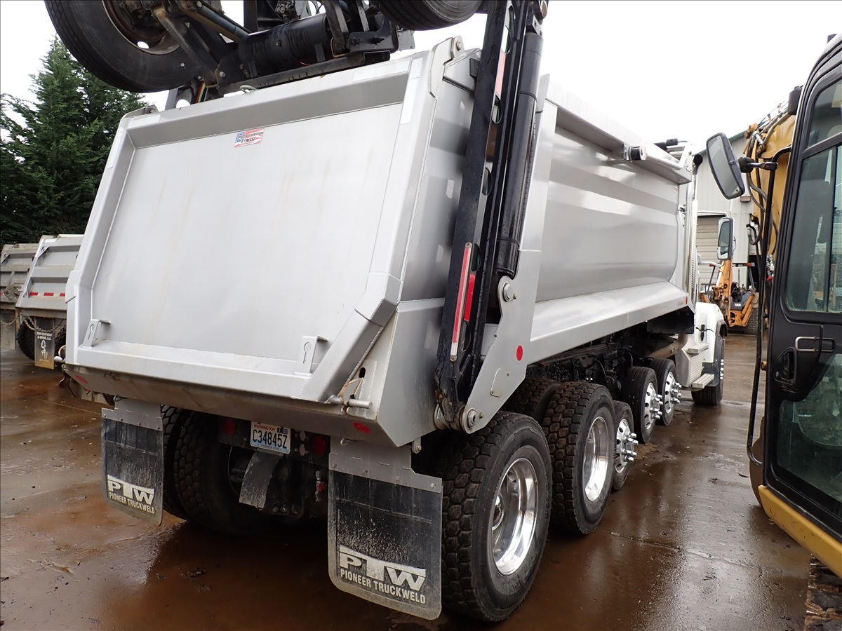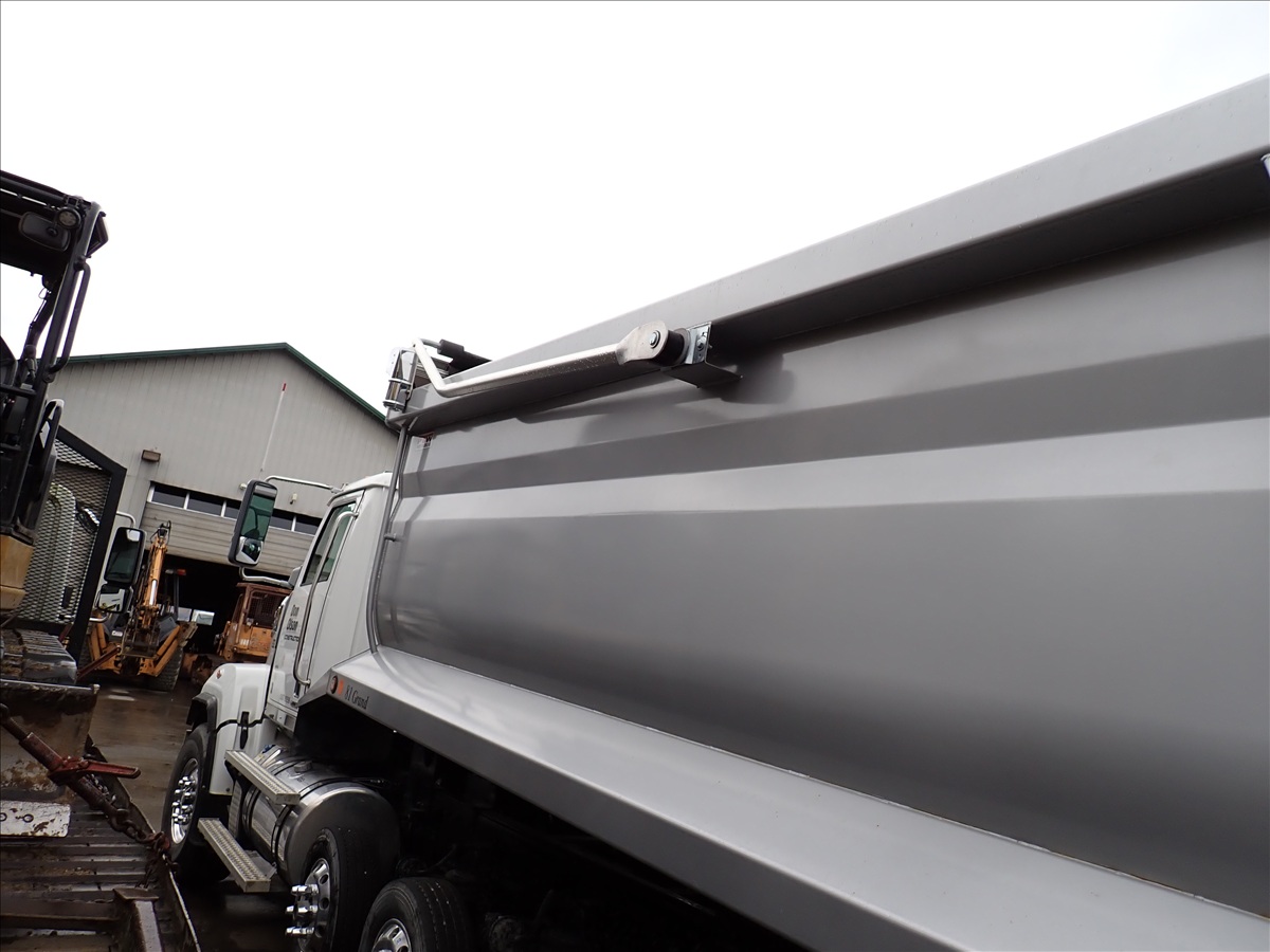 SUPER SOLO DUMP TRUCK, DETROIT DD13-500+HP, ALLISON AUTO, 18,000 FRONT, 46,000 REARS, LOCKERS, HAULMAX SUSPENSION, (3) DROP AXLES, STRONG ARM BOOSTER, 18' 6" STEEL BOX W/TARP SYSTEM