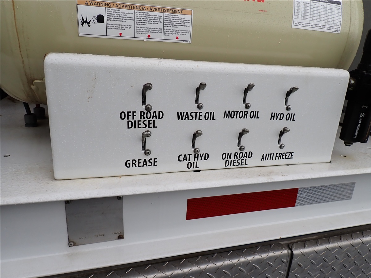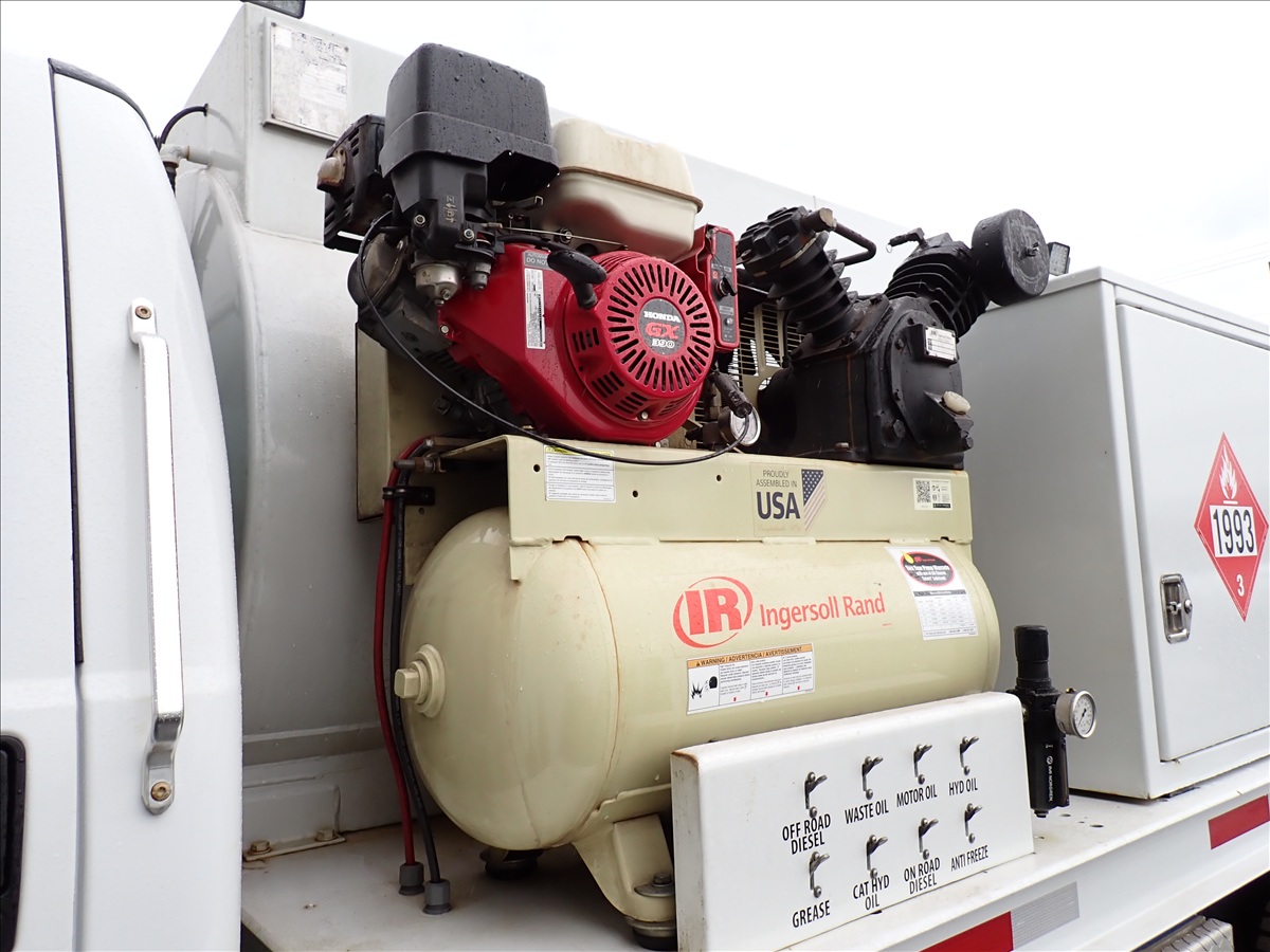 S/A FUEL LUBE TRUCK, CUMMINS ISB250, 6 SPD, INGERSOLL RAND AIR COMPRESSOR W/HONDA, 750 GALLON OFF ROAD DIESEL TANK, AUX ON ROAD FUEL TANK, (5) PRODUCT TANKS, GREASE BARREL, WASTE OIL RECOVERY SYSTEM, HOSE REELS, DISPENSERS, METERS, AIR BRAKE, 33,000 GVW