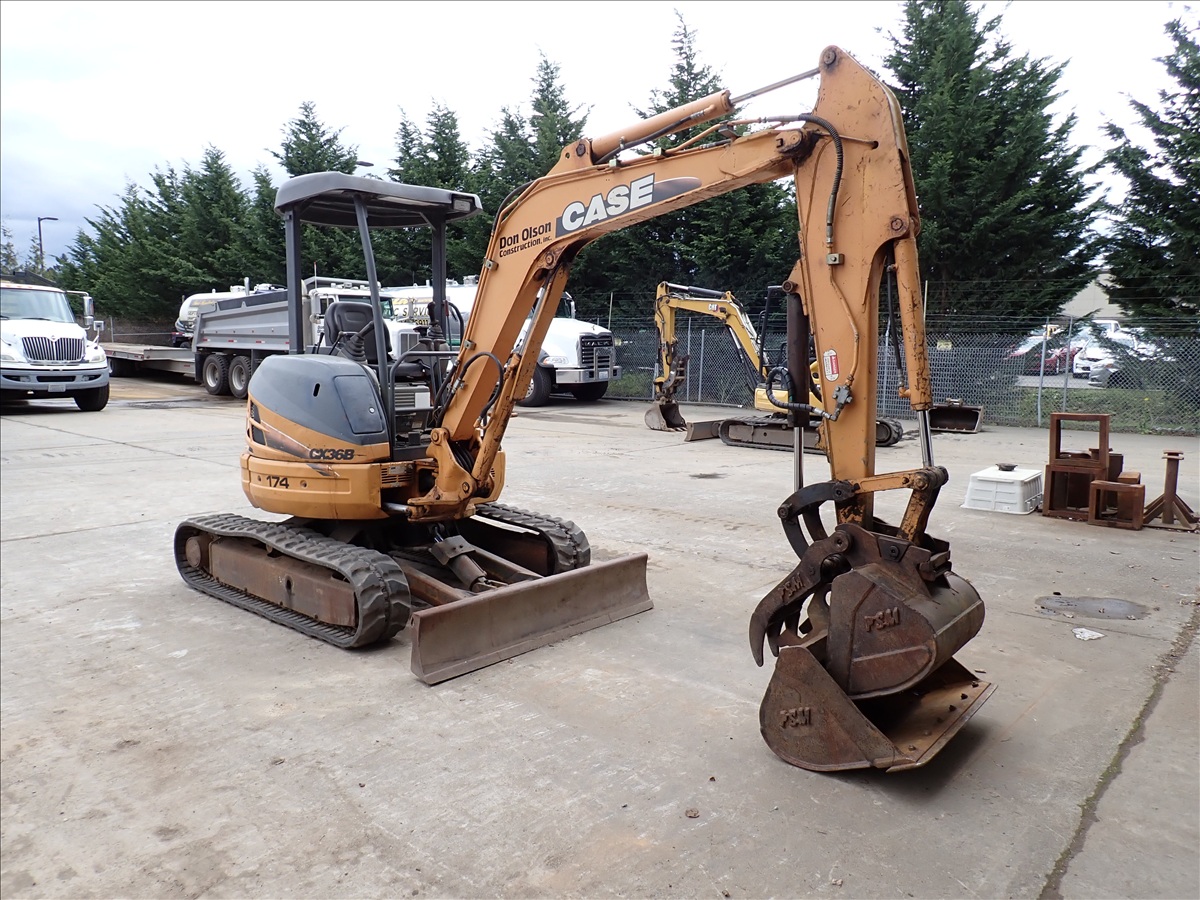 MINI EXCAVATOR, (2) BUCKETS, HYD THUMB, SWING BOOM, BLADE, CANOPY, RUBBER TRACKS