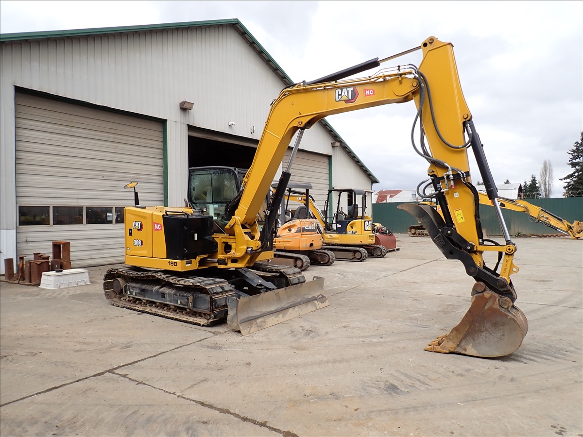 HYDRAULIC EXCAVATOR, PIN GRABBER, DITCH & DIG BUCKET, HYD THUMB, AUX HYD, SWING BOOM, A/C CAB, BLADE, RUBBER PADS