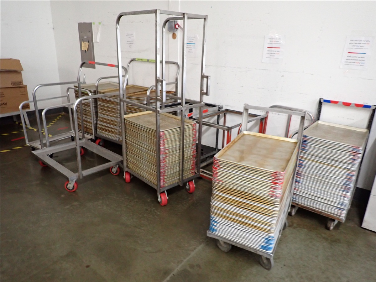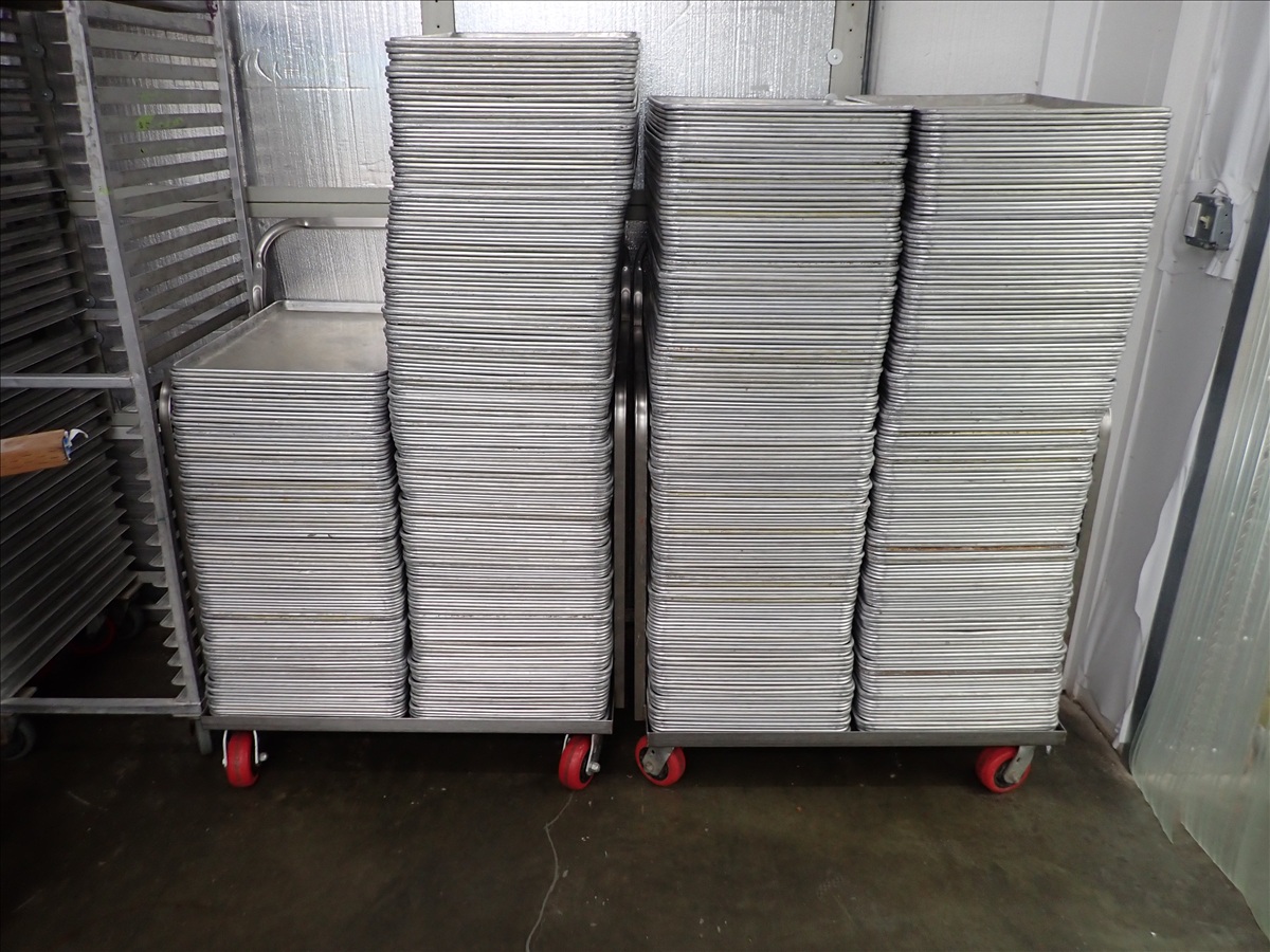 (500+) ALUMINUM SHEET PANS W/CARTS