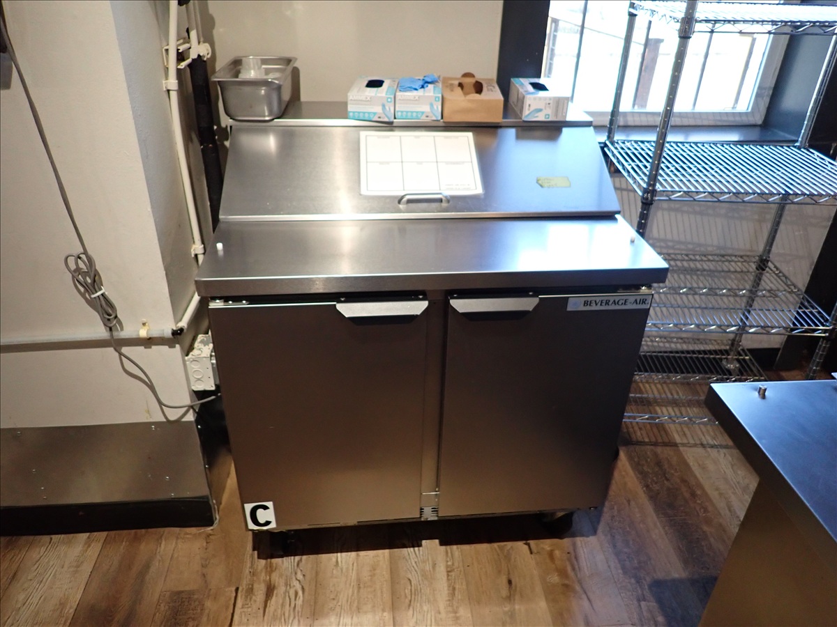 GROUP OF (2) BEVERAGE AIR SPE30HC 30" REFRIGERATED PREP TABLES ON CASTERS