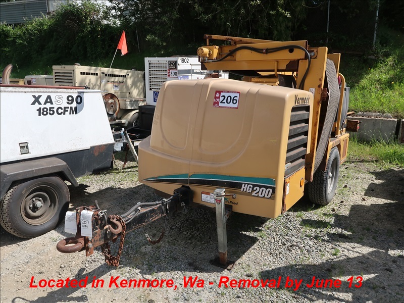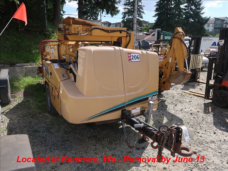 TRAILER MOUNTED HORIZONTALGRINDER, 42" TUB, 18" X 8"FOLDING DISCHARGE CONVEYOR,SMART FEED SYSTEM, 4 CYLDIESELHOUR METER READS: 309