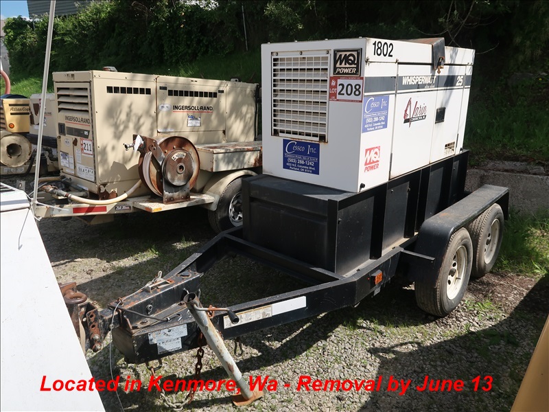 T/A TRAILER MOUNTED 25KVA/20KW240/480V 3 PHASE-14.4 KW,120/240V, SINGLE PHASEGENERATOR, ISUZU AA-4LE2,4 CYL DIESEL, HOUR METERREADS: 13,238