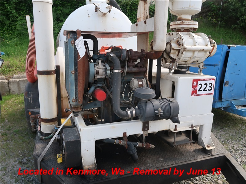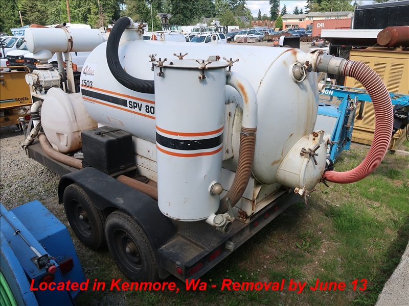 14' T/A EQUIPMENT TRAILERW/VACMASTERS SPV 800 DT4/WVACUUM W/200 GAL WASH DOWNTANK, KUBOTA 4 CYL DIESELHOUR METER READS: 1,012