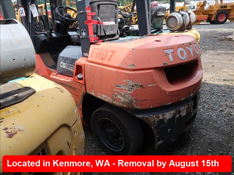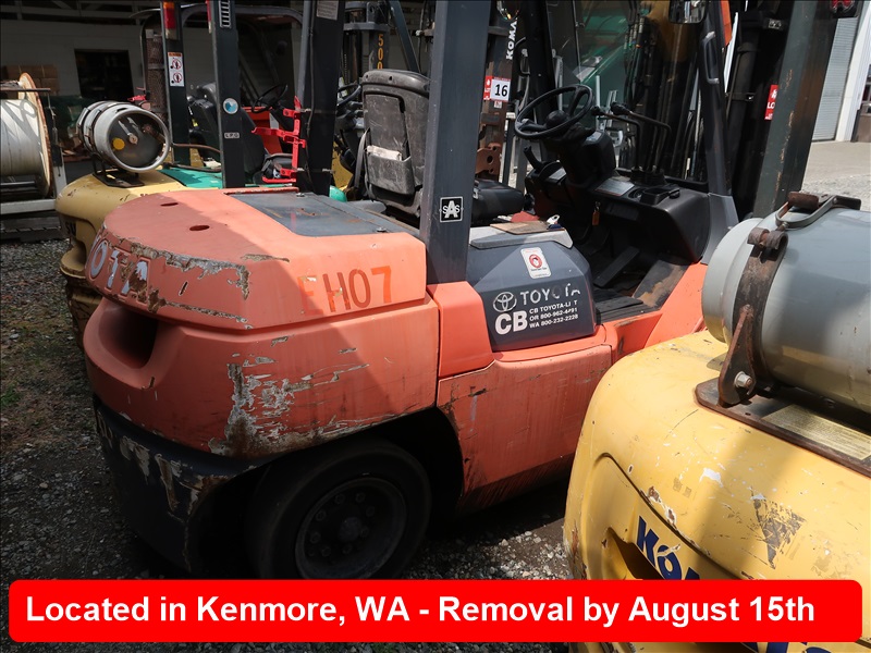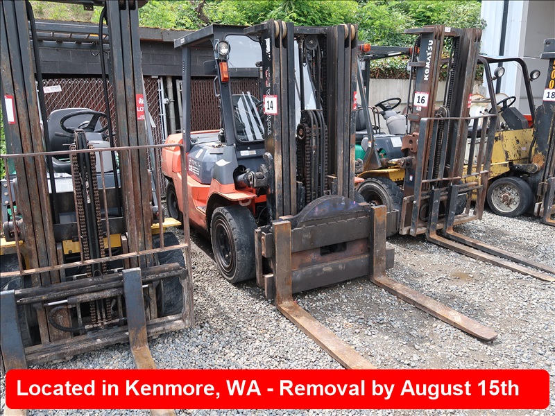 6,500 LB SOLID CUSHION TIREFORKLIFT, 166" 3-STAGE MAST,ROTATOR ATTACHMENTW/SIDESHIFT, 4 CYL DIESELHOUR METER READS: 9,201