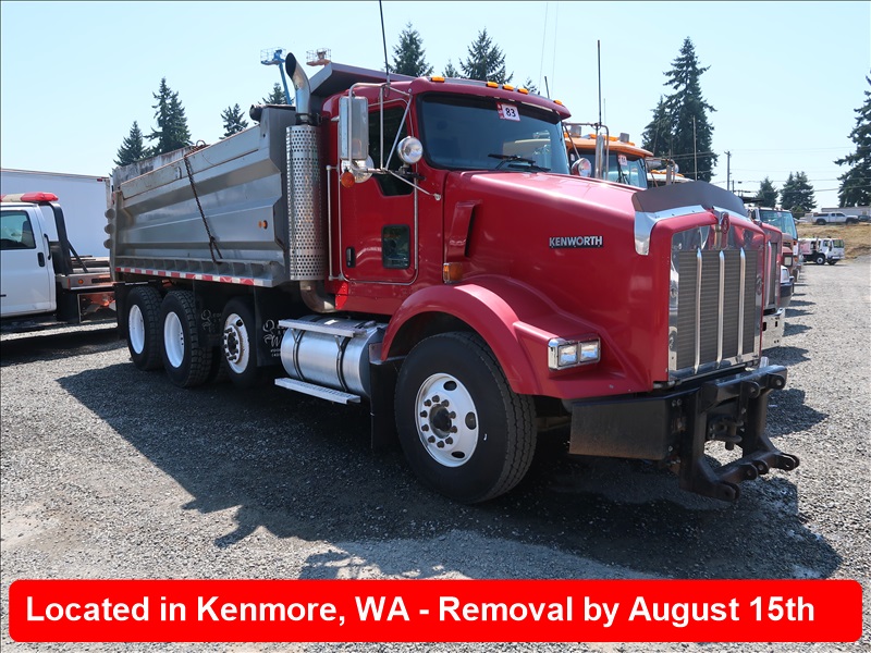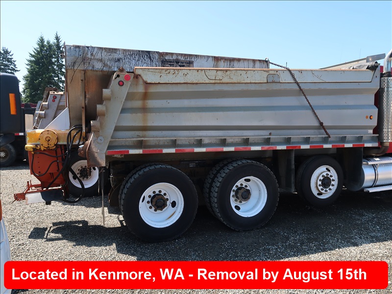 TRI/A DUMP TRUCK, 16'5" STEELBOX, SWENSON SANDER SPREADER,TAILGATE, 450 HP CAT C-15, 18SPD, HAULMAXX SUSPENSION,213" W/B, 46,000 LB REARS, DBLLOCKERS, DROP AXLE, PLUMBEDFOR PUP
