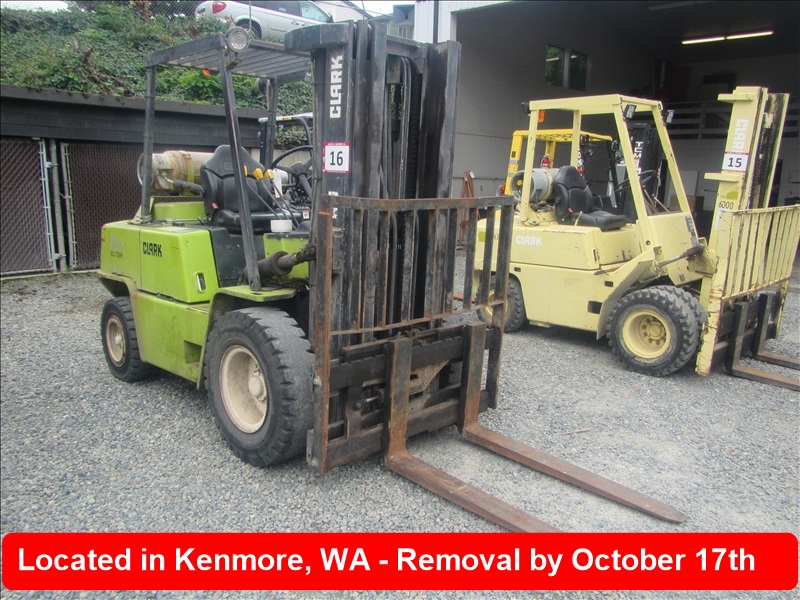 8,000 LB SOLID CUSHION TIREFORKLIFT, 170" FORK HEIGHT,3-STAGE MAST, SIDE SHIFT,4 CYL PROPANEHOUR METER READS: 4,677