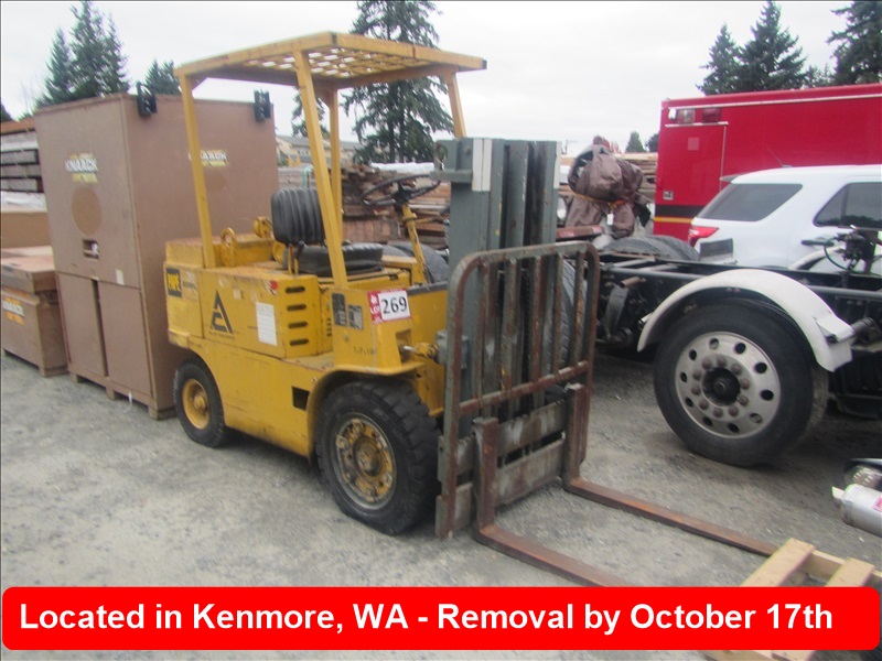 5,500 LB PNEUMATIC TIREFORKLIFT, 2-STAGE MAST, 4 CYLDIESEL, HOUR METER READS:3,451(COUNTY DISCLOSURE: TURNSOVER, WILL NOT START)
