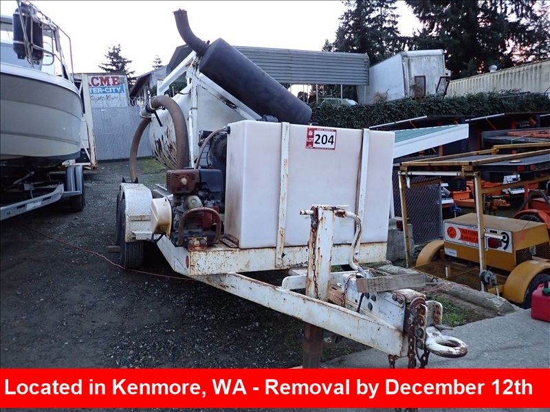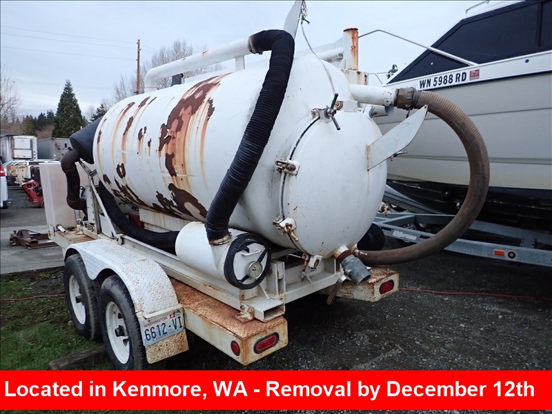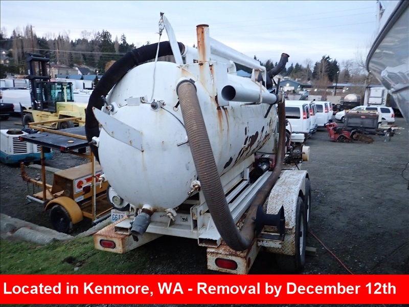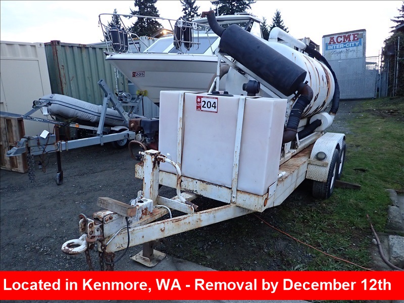 T/A VACUUM TRAILER, 40 HPDEUTZ DIESEL, UNIVERSAL 59URAI THC BLOWER, HONDAPRESSURE WASHER, 800 GALLONDEBRIS TANK, 100 GALLON CLEANTANK, HYD DUMP