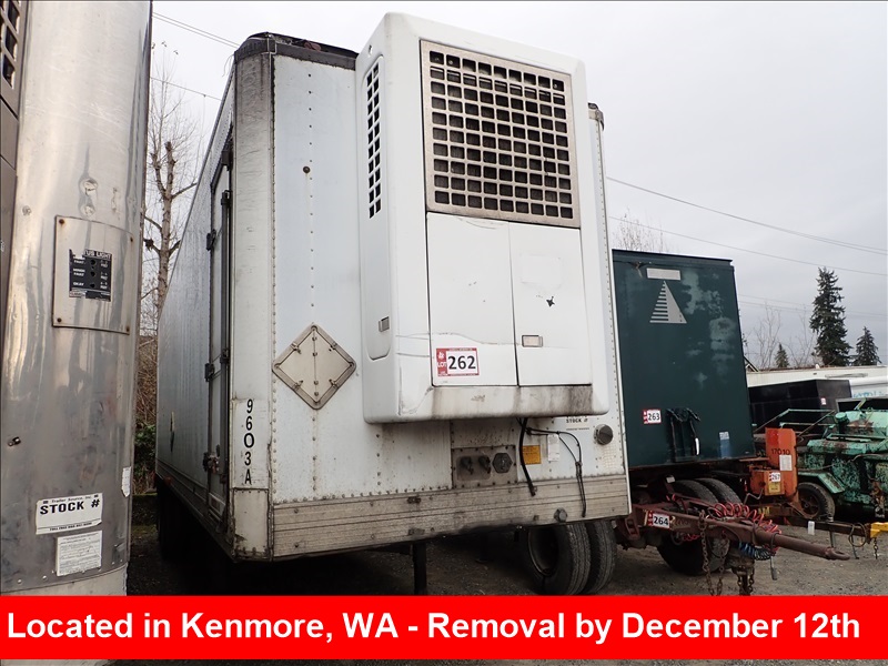 32' T/A REFRIGERATED VANTRAILER, THERMO KING SUPER II,DIESEL REFER UNIT, LIFTGATE,REAR PINTLE AIR, SIDE DOOR,TIRE SIZE 295/75R22.5HOUR METER READS: 24,338*NO REMOVAL UNTIL WED,
