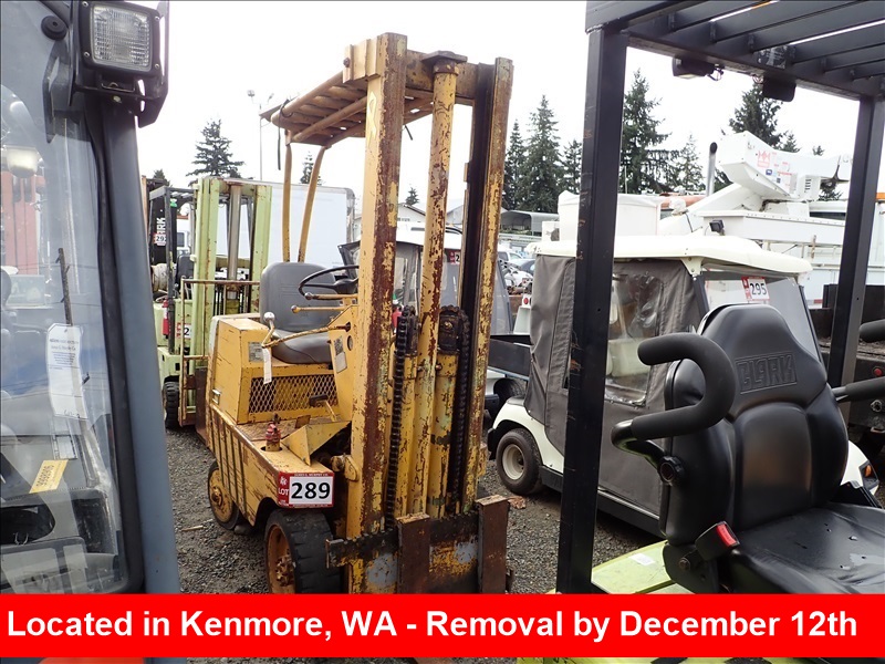 4,000 LB HRT FORKLIFT, 180"FORK HEIGHT, 2-STAGE MAST,TILT, 4 CYL, GASHOUR METER READS: 7,968(TURNS OVER, WON'T START)