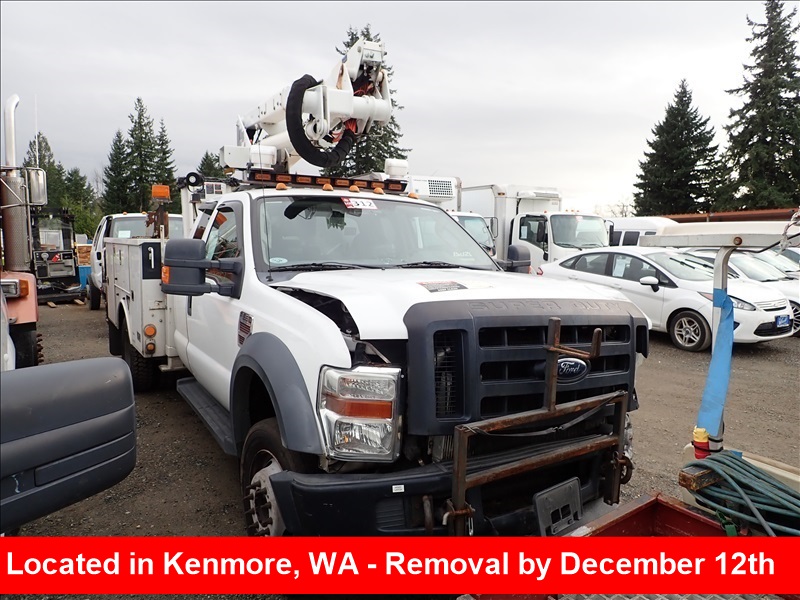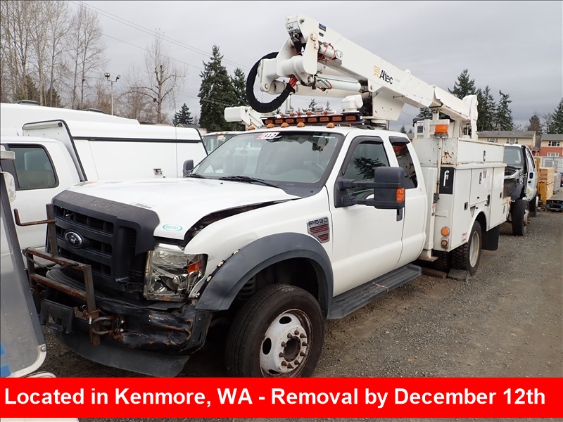 EXT CAB, BUCKET TRUCK, ALTECAT37G, 37', 350 LB,OUTRIGGERS, POWER STROKE, AUTO(ACCIDENT DAMAGE)*BUYER NEEDS CERTIFIED WEIGHTTO LICENSE VEHICLE**