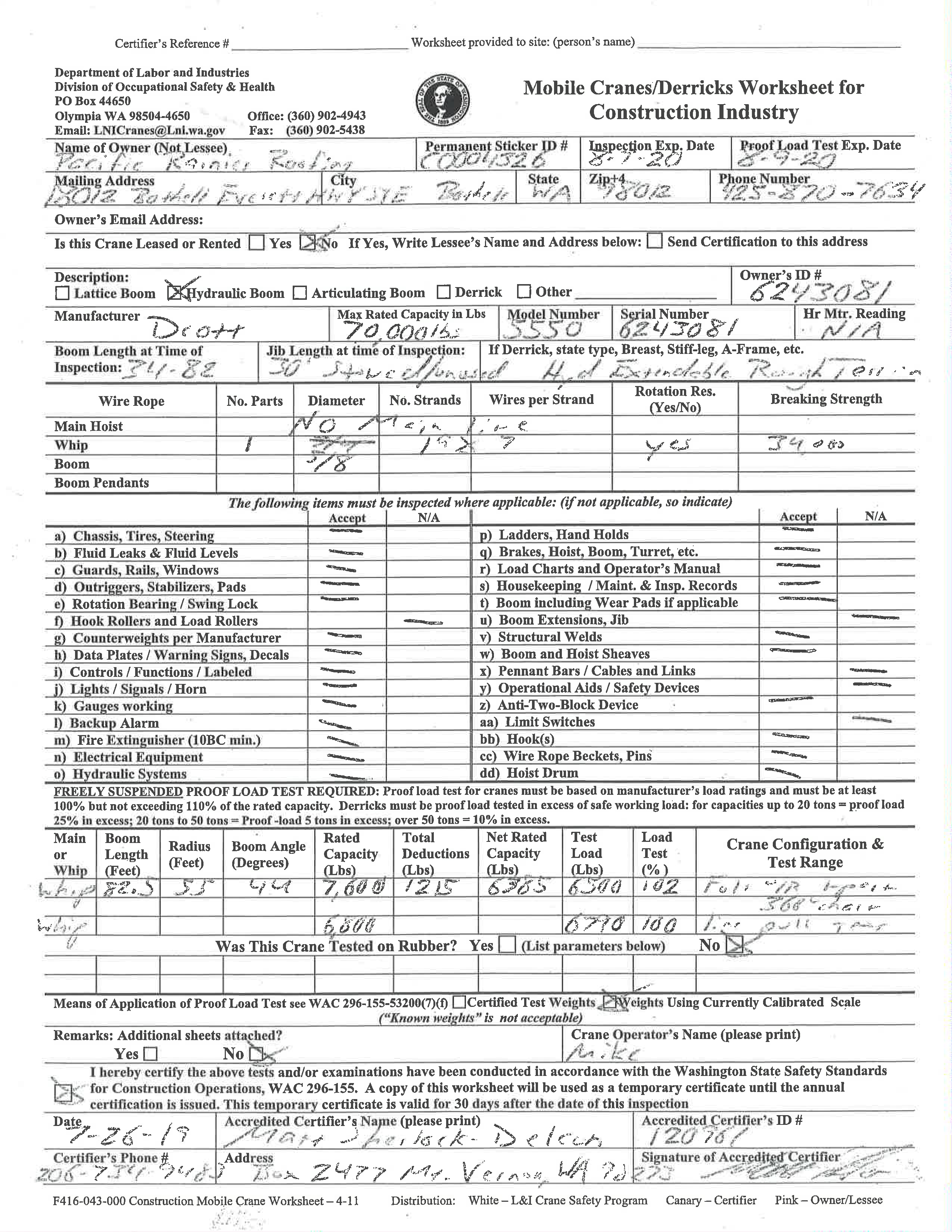 7600LB CERTIFICATION ON WHIP LINE ONLY,