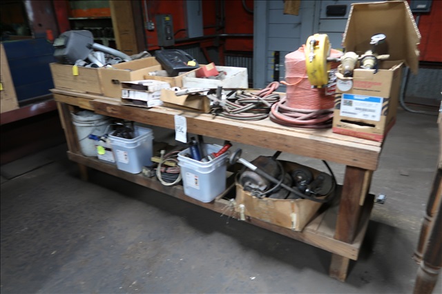 LOT, ASSORTED TOOLS & SUPPLIES W/TABLE