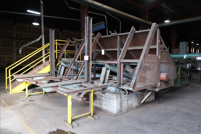APPROX 8' 2-ARM X 54" MECHANICAL BREAKDOWN HOIST, MOTOR W/BRAKE TO FALK SQUARE BOX REDUCER, OUTFEED SLOPING, SUPPORTS