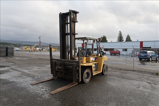 APPROX 13,000 LB CAPACITY FORKLIFT, DIESEL ENGINE, 199" 2-STAGE MAST W/FINGERTIP CONTROLS & FORK POSITIONERS, SIDE SHIFT, 53" FORKS, DUAL SOLID TIRES
