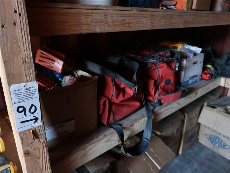 LOT, ASSORTED CHARGERS & BATTERIES ON THIS SHELF SECTION