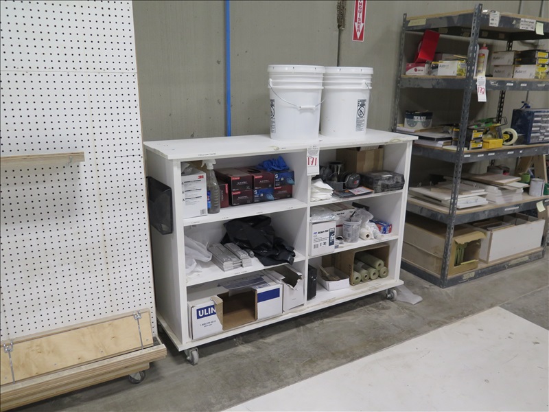 LOT, MISC GLOVES & PAINTING SUPPLIES W/CABINET