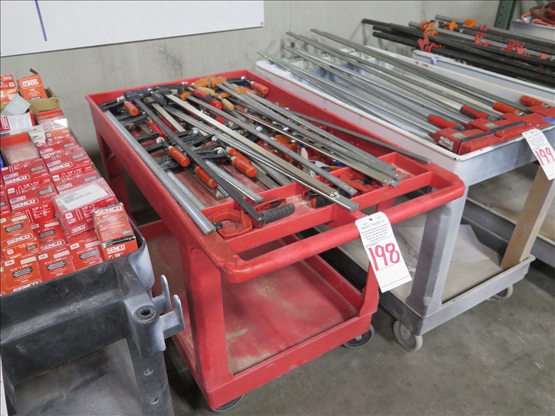 LOT, MISC CLIP & BAR CLAMPS W/POLY CART