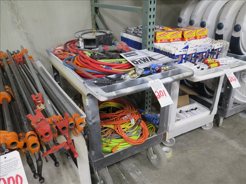 LOT, MISC PNEUMATIC HOSE & CONNECTORS, HOSE REEL, POWER CORDS & POLY CART