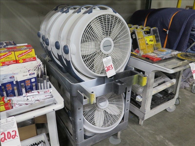 LOT, (9) WIND MACHINE 18" SHOP FANS W/POLY CART