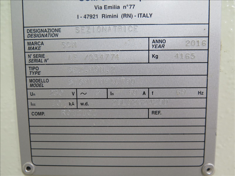 SEZ.MON.2 CNC HORIZONTAL PANEL/BEAM SAW W/SCM GROUP CONTROLS (DISCONNECT AT SAFETY SWITCH, SAFETY SWITCH NOT INCLUDED)
