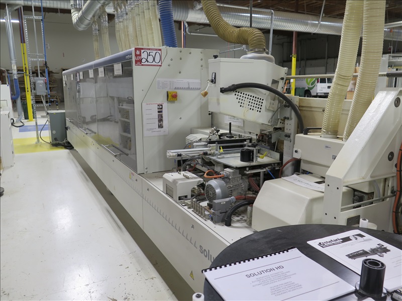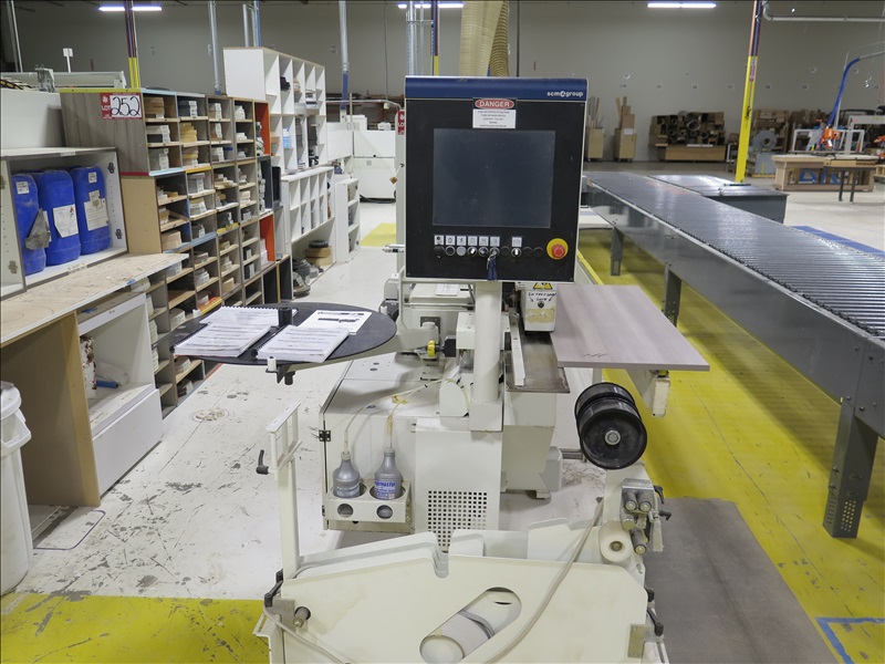 CNC EDGE BANDER W/SCM GROUP CONTROLS, CAPABILITIES TO CUT END TRIM, HEIGHT TRIM, 2-POSITION ANGLED CHAMFERING, ROUND EDGES, 1MM BANDING EDGE SCRAPING, GLUE SCRAPING, EDGE BRIGHTENING & BUFFERING (SPIDERS INCLUDED), (DISCONNECT AT SAFETY SWITCH, SAFETY SWI