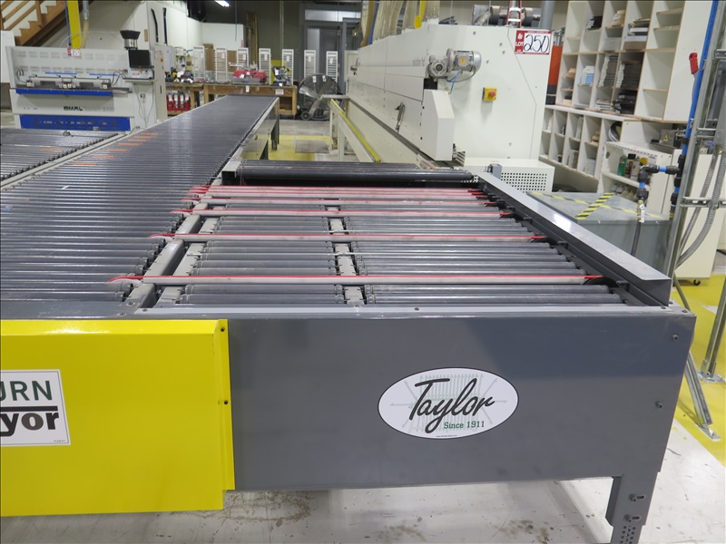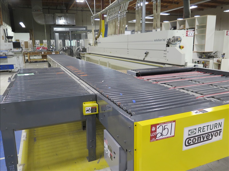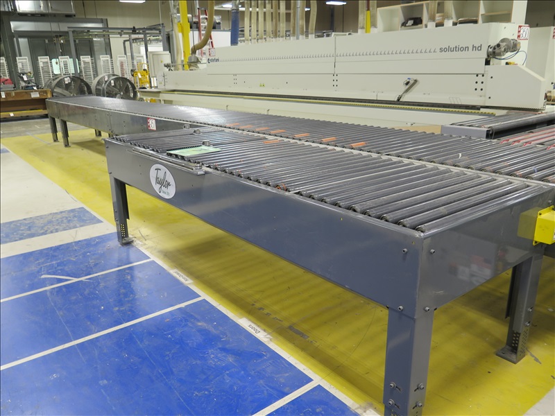 35' EDGE BANDER RETURN ROLLER CONVEYOR W/9' 10" AUXILLIARY ROLLER CONVEYOR SECTION, 440V, 3 PHASE (DISCONNECT AT SAFETY SWITCH, SAFETY SWITCH NOT INCLUDED)