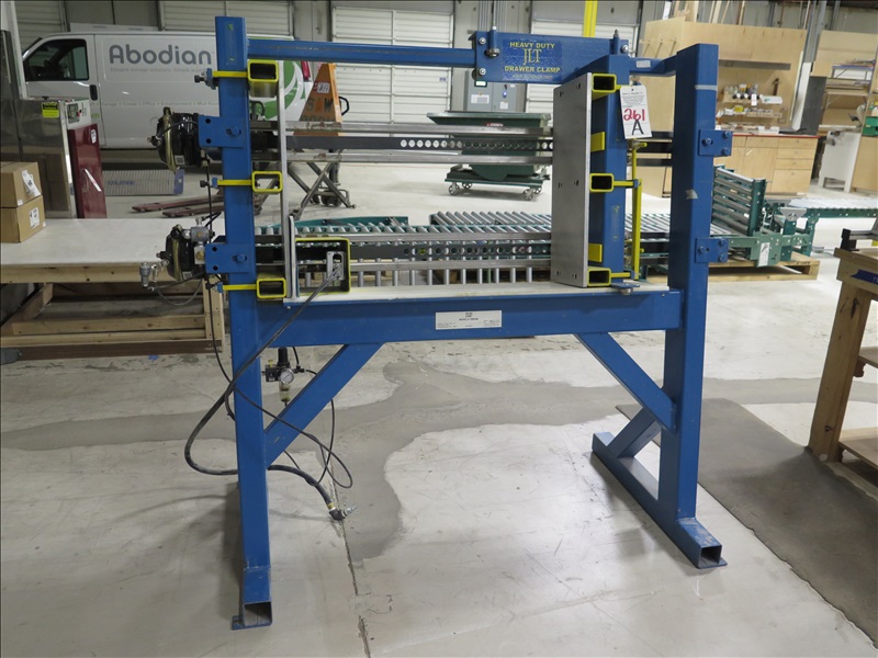 HEAVY DUTY PNEUMATIC DRAWER & CASE CLAMP MOUNTED ON A 5' METAL FRAME