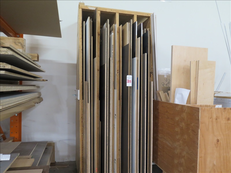 LOT, MISC SHEET GOODS IN THIS WOOD RACK W/RACK