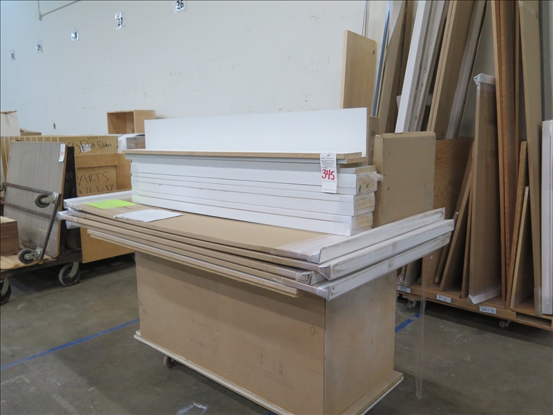 LOT, SHINN SHADE DOOR PANELS & MISC CABINET COMPONENTS ON THIS CART W/CART