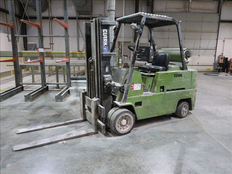 10,000 LB CAP FORKLIFT, PROPANE, 3-STAGE MAST, DUAL SOLID TIRES, HOUR METER READS: 1,996 (NEEDS WORK)
