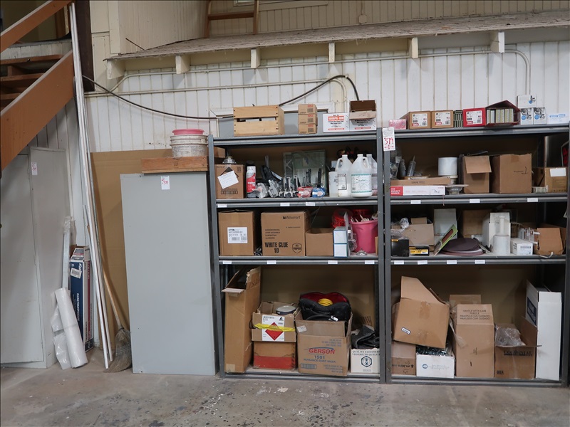 LOT, (2) STEEL SHELVES & METAL LOCKER W/CONTENTS