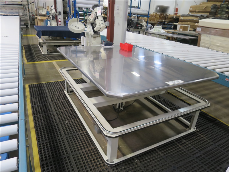 TAPE EDGE MACHINE W/SINGER 300UX6 SINGLE NEEDLE SEWING HEAD & 60" X 79" SS TOP POWER TABLE