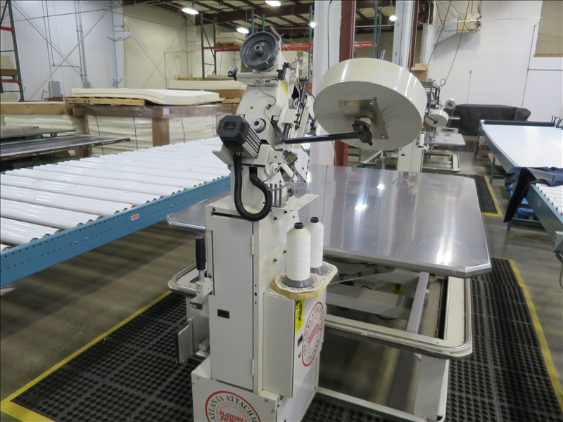 TAPE EDGE MACHINE W/SINGER 300UX6 SINGLE NEEDLE SEWING HEAD & 60" X 79" SS TOP POWER TABLE