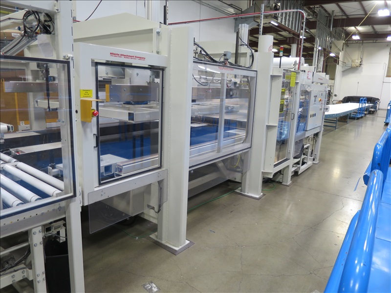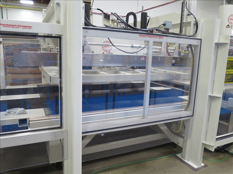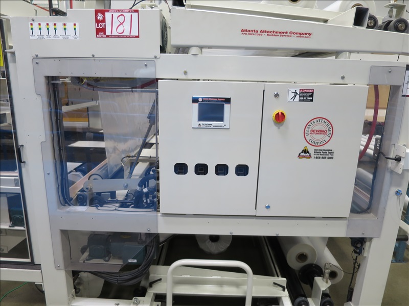 AUTOMATIC MATTRESS PACKAGING MACHINE W/FILM STORAGE DIGITAL FEED SYSTEM, TOUCHSCREEN CONTROLS, PNEUMATIC MATTRESS COMPRESSOR STATION, HEATED FILM SEALER BARS & CONTINENTAL HYDRAULICS UNIT, 480V, 3 PHASE