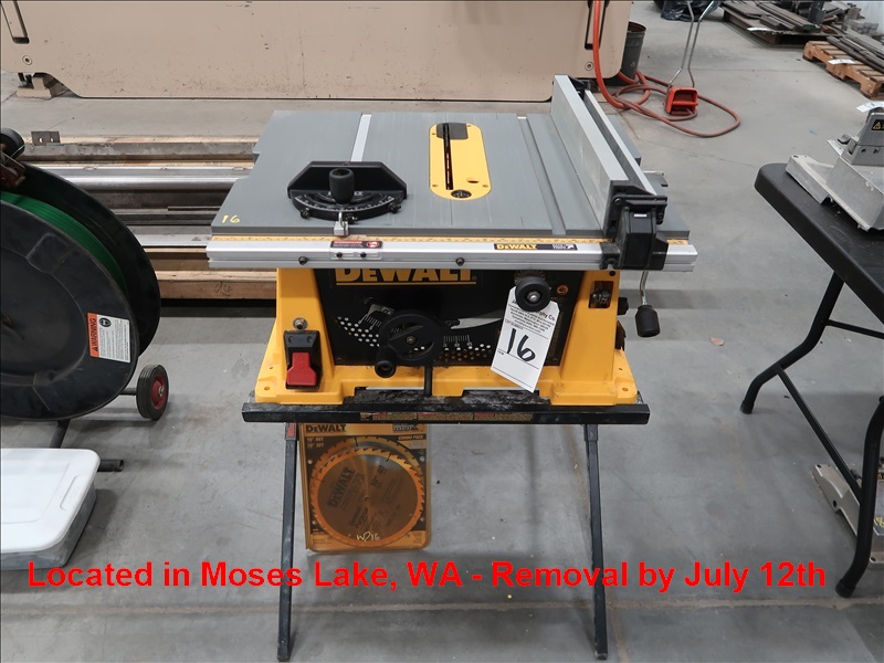 10" TILTING TABLE SAW W/RACK & PINION FENCE, MOD# DW7440 STAND, (2) UNUSED BLADES
