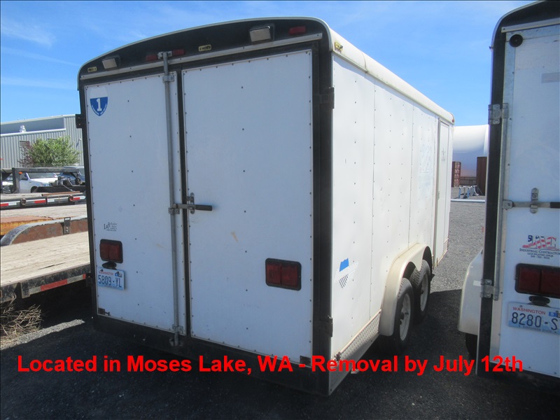 16' TANDEM AXLE CARGO TRAILER, MAN & BAR DOORS, SHELVING, ST205/75R15 TIRES