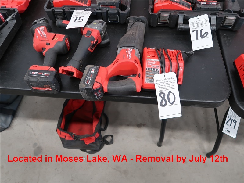 LOT, FUEL RED LITHIUM 5.0 CORDLESS HACKZALL, GRINDER, DRIVER, DRILL, (2) BATTERIES & (2) CHARGERS