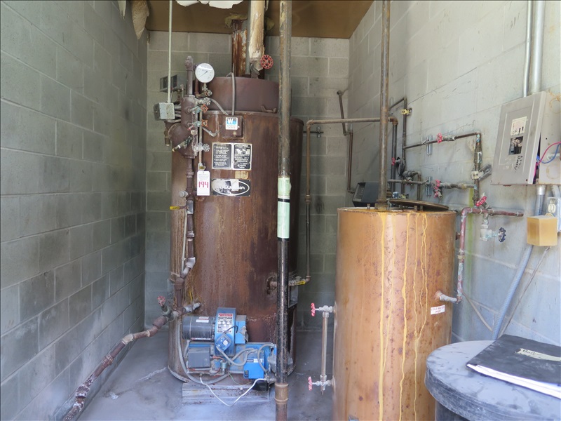 25 HP GAS FIRED BOILER (GAS LINE BREAKS AT THE 1ST COUPLER, WATER BREAKS AT VALVE, VALVE STAYS W/THE BUILDING)