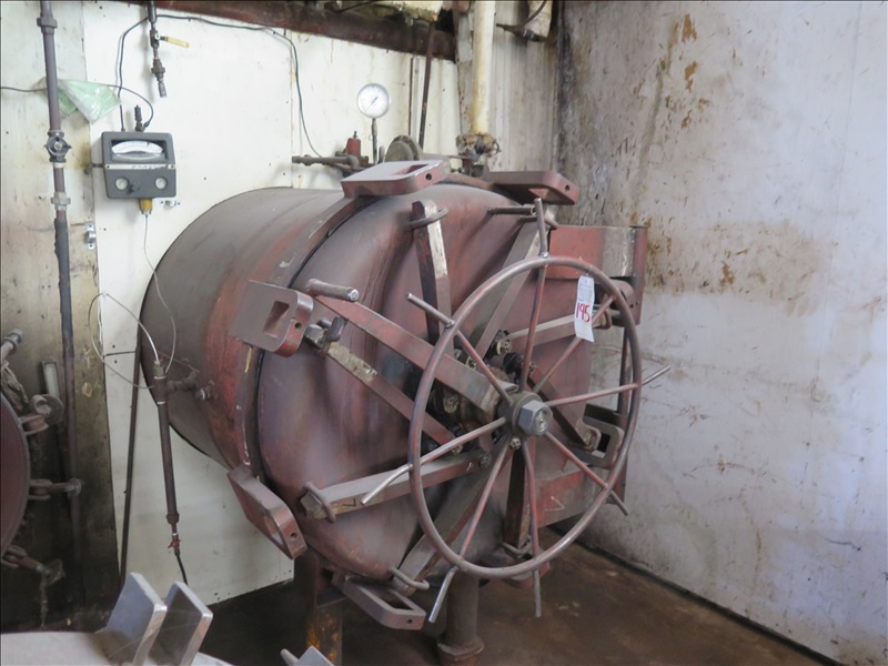 SHOP BUILT GAS FIRED AUTOCLAVE, POWER FLAME BURNER, MAX WP 150, WHS 57.5, HD TH: 1/2", SH TH: 5/16" WARRICK CONTROLS (STEAM LINE BREAK AT 1ST COUPLER, MUST CAP HOLE IN THE WALL W/PLYWOOD)