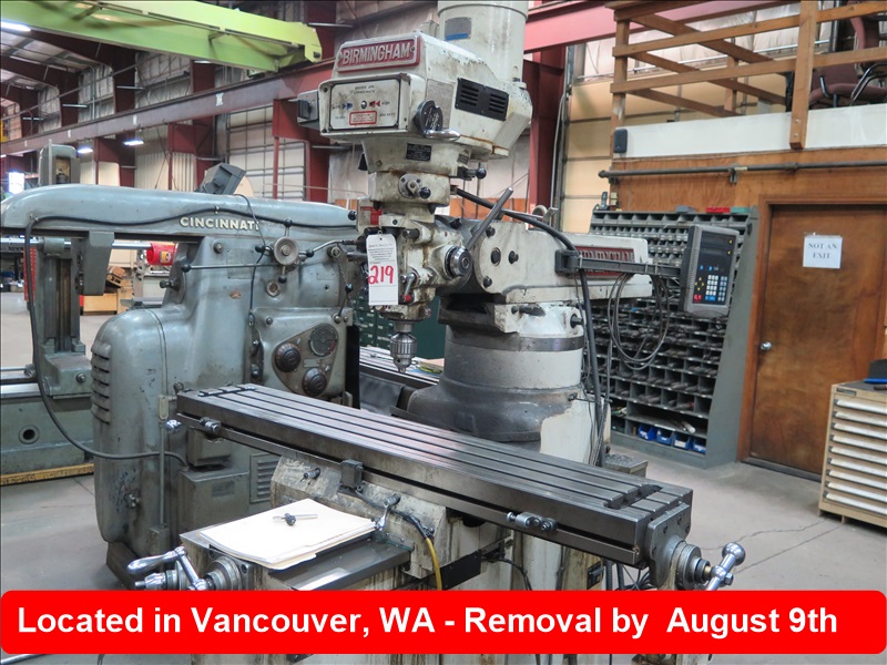 3 HP VERTICAL MILLING MACHINE, 10" X 54" POWER FEED TABLE, NEWALL C80 DRO, 220/440V, 3 PHASE