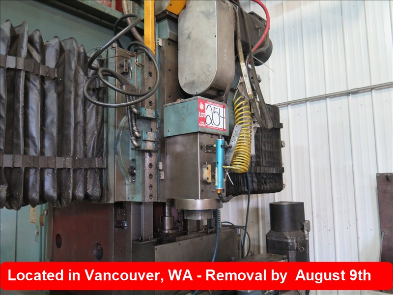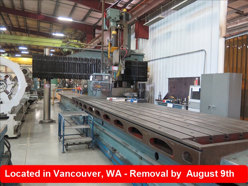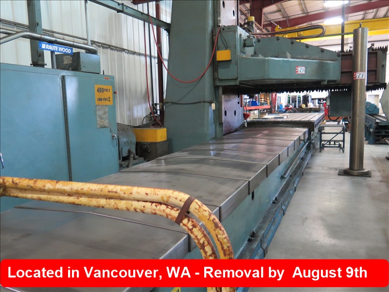 60" X 240" OPEN SIDE PLANER MILL W/YANCEY RAIL HEAD, 60" VERTICAL, 108" ARM, YANCEY SIDE HEAD, GN11 SERIES CONTROLS , TO INCLUDE TRANSFORMER, (2) LISTA CABINETS W/CONTENTS & CABINET W/SPARE PARTS